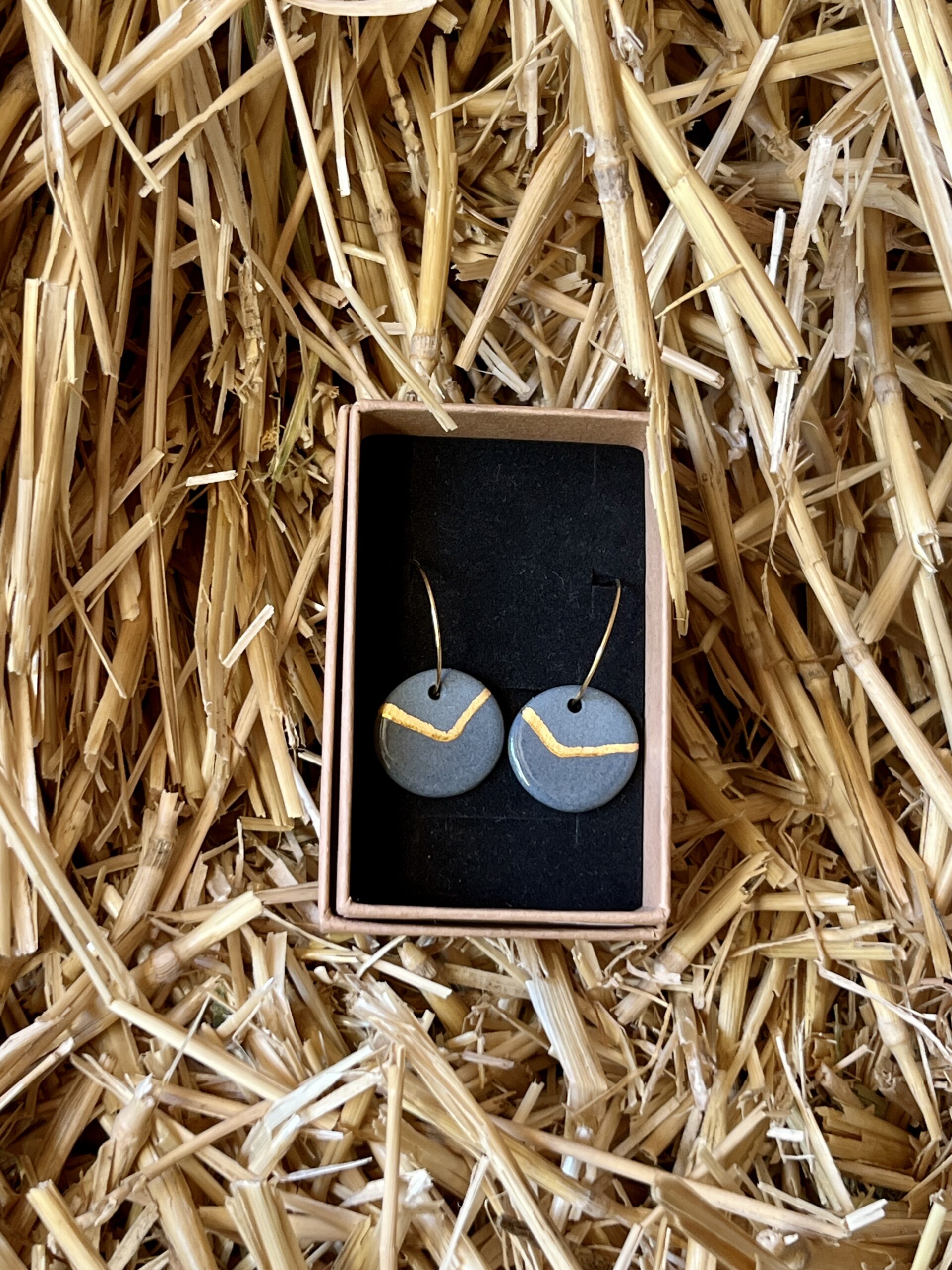 La porcelaine coloré est grise, chaque lot est unique, accompagné d’une fine ligne d’or appliquée au repicage permet de souligner la forme avec délicatesse, un geste précieux, presque secret.