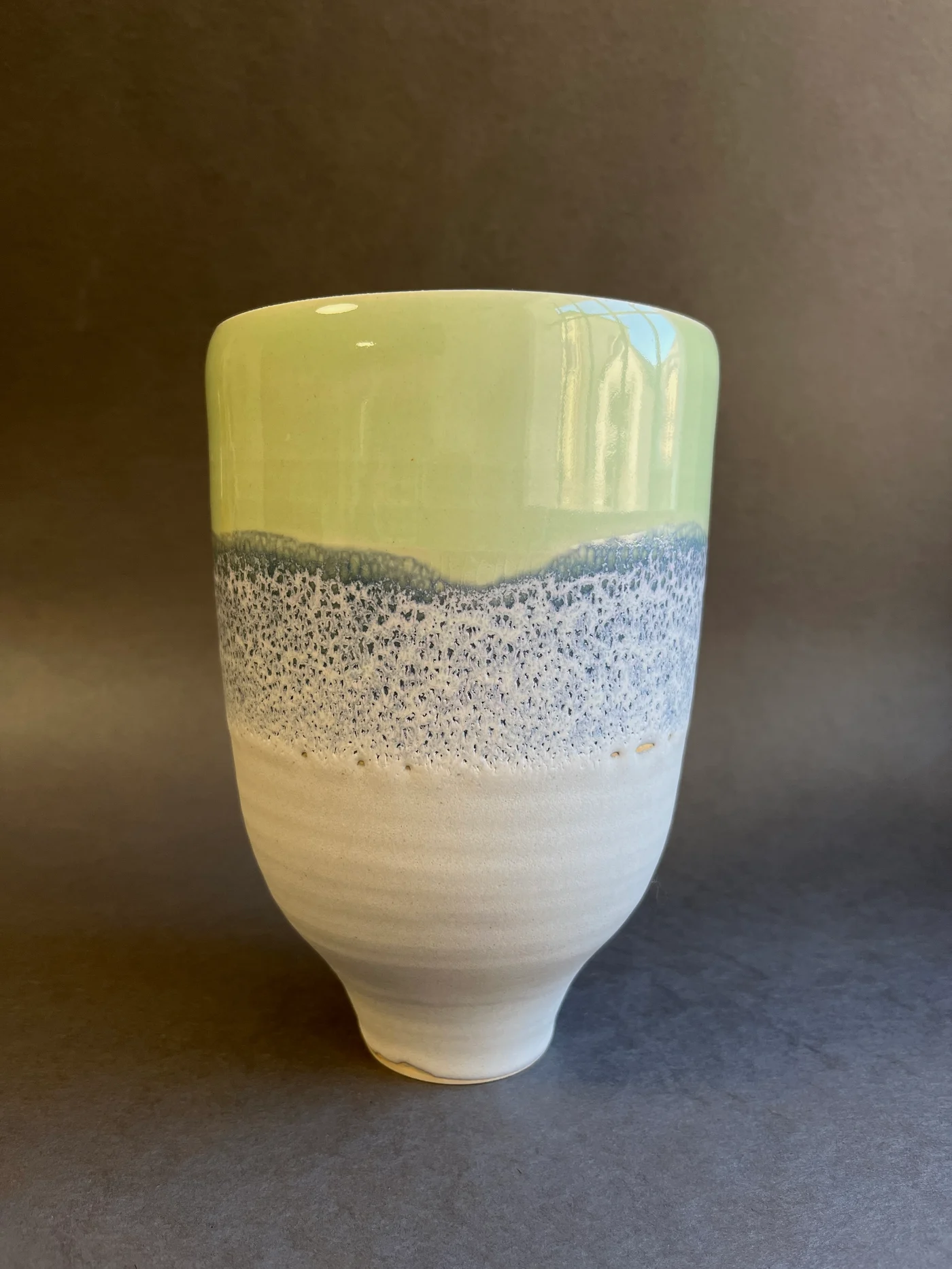 Fabriqué à la main en grès porcelaineux, ce vase est unique, alliant beauté et fonctionnalité. Le mélange des teintes évoque les profondeurs marines et les horizons lointains, apportant une note de fraîcheur à votre espace.